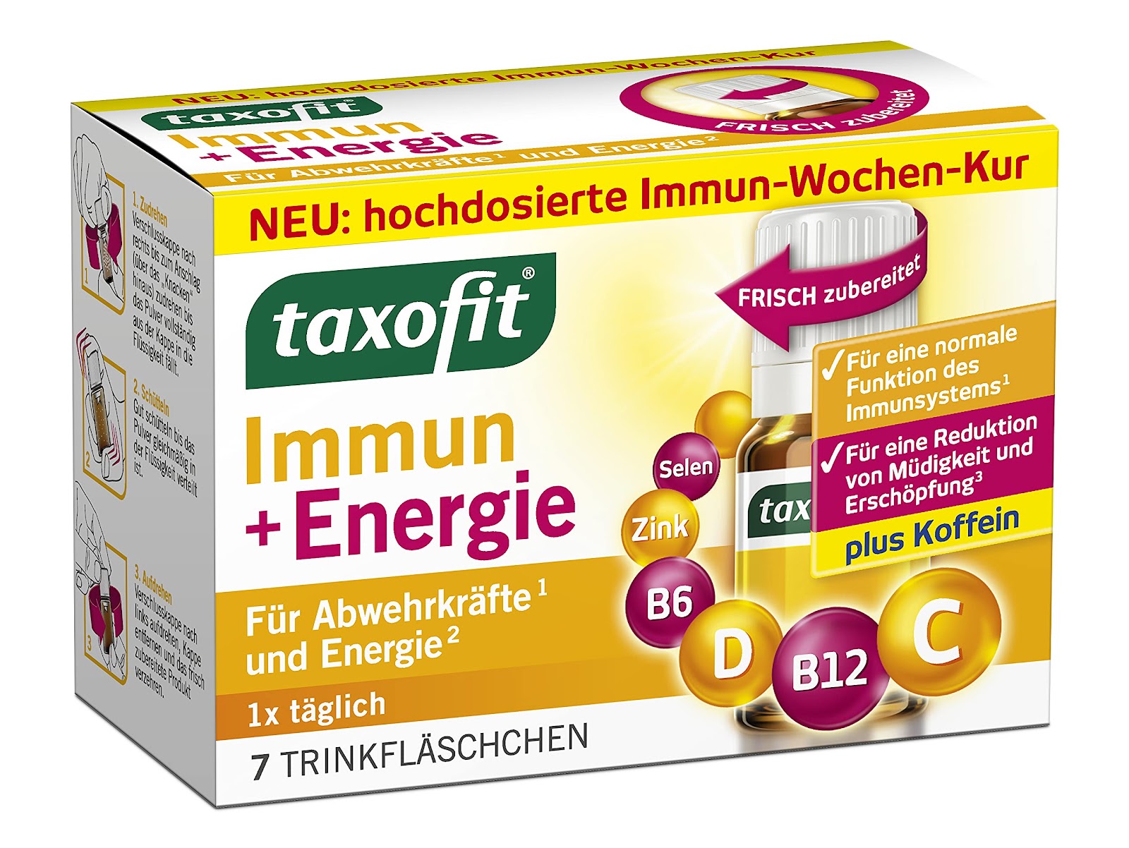 Suplement likuid me vitaminë C, zink dhe ekstrakte natyrore që përforcojnë sistemin imunitar dhe rrisin nivelin e energjisë. I përshtatshëm për përdorim në periudhat e lodhjes, stresit apo gjatë stinëve të ftohta. Gjithsej 7 flokona. Të pihet nga një në ditë.